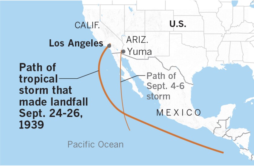 September 1939 was a stormy month on the world stage. On Sept. 1, Hitler invaded Poland. On Sept.3, Britain, France, Australia and New Zealand responded by declaring war on Germany. In Los Angeles that month, as residents sweated through an unusual heat wave and nervously watched the storm clouds of World War II gathering overseas, four tropical cyclones that would affect Southern California were born in the eastern North Pacific.
