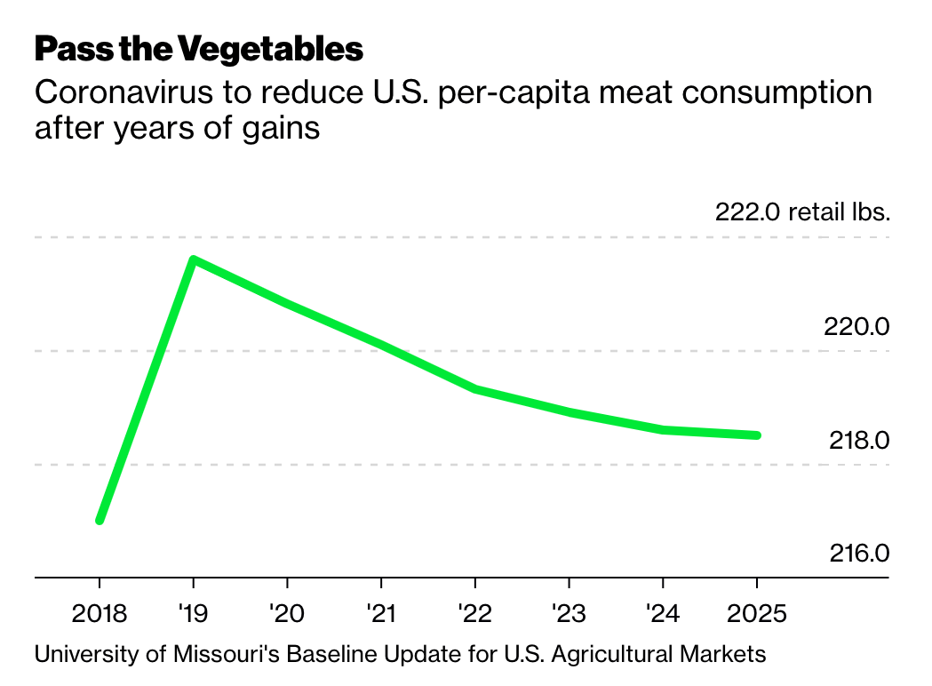 “Covid is shining a light for consumers to start evaluating their own choices and whether or not they want to continue to buy meat,” Josh Balk, vice president of farm animal protection for the Humane Society, said in an interview with Bloomberg News.