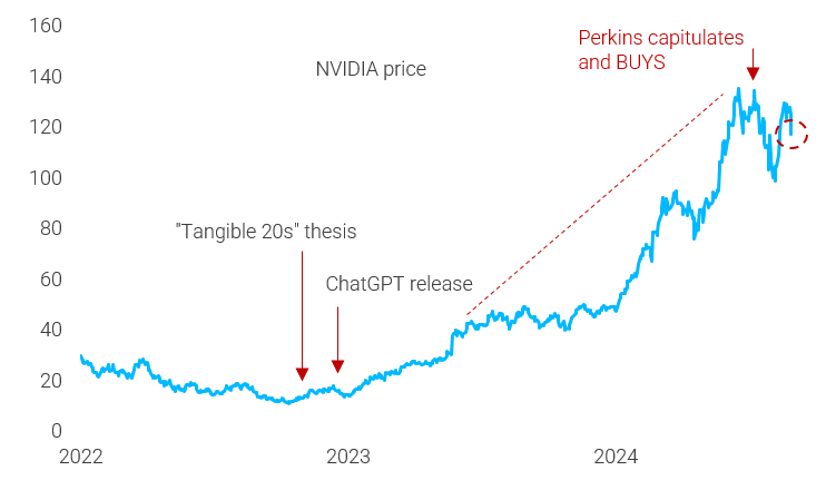 1/6Our strategy team certainly believes I can add value. Unfortunately, that value comes from being a reverse indicator. Every so often, they ask me for my views on NVIDIA, presumably so they can advise the EXACT OPPOSITE . After spending 18 months writing sceptical takes on AI and forecasting a big rotation (remember the Tangible 20s?) I capitulated in July (at the peak) and now own the stock PA. Last week I found myself watching the NVIDA release live on CNBC, which in itself is revealing.