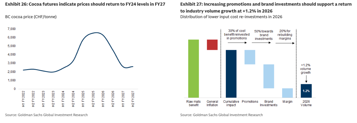 Cocoa prices have collapsed 75% from their 2024 peaks, and Goldman’s latest note points out that the worst of the cocoa shock for chocolate makers may finally be passing after being squeezed by soaring bean costs through 2023, 2024, and into the first half of 2025. This only suggests that lower chocolate bar prices at the supermarket could materialize later this year. Against that backdrop, Goldman reiterated Buy ratings on two confectionery stocks.