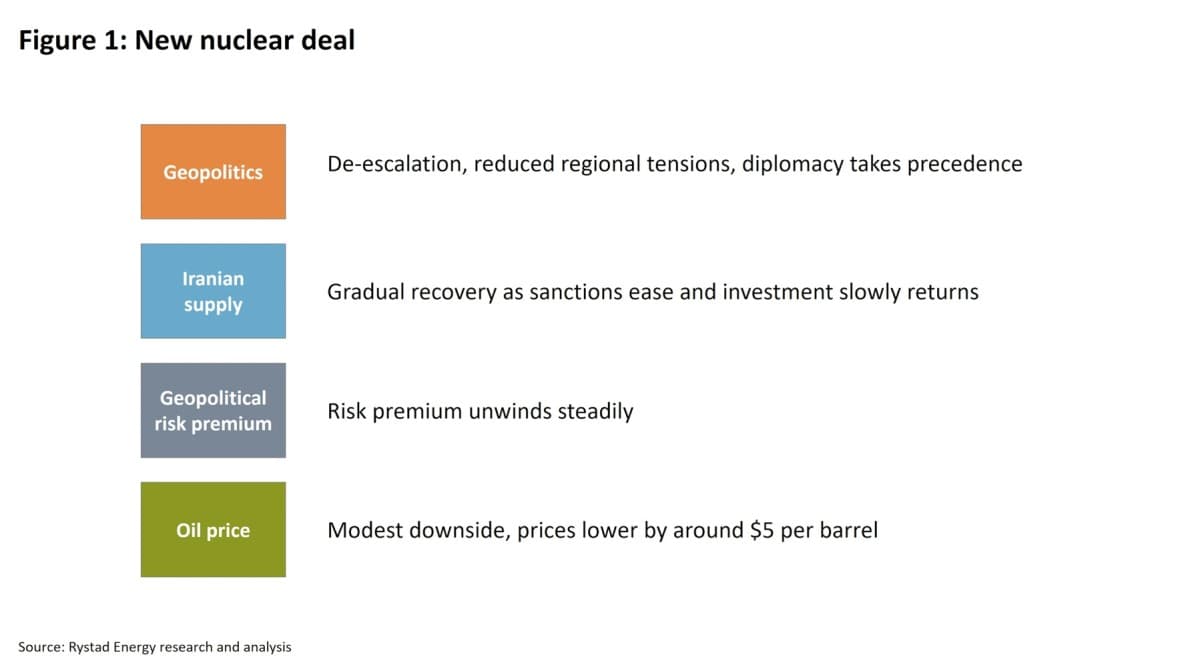 - Downside oil price risks from a renewed Iran nuclear deal are limited and gradual, while escalation scenarios carry large and rapid upside potential.